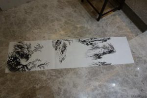 中国、廬山&安徽、文房四宝の旅−28、安徽、屯渓のホテルで水墨画の実演販売を見る。
