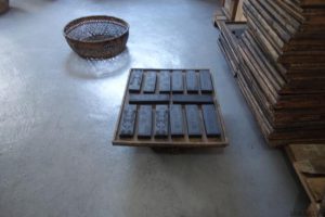安徽、歙県上荘「老胡開文墨匠」工房にて。 説明してくれている方の、墨匠の奥さんらしい、口調が段々と熱を帯びてきた。淡々と 工程を説明するのが普通の地味な墨作りではあるけど、この方々の思い入れは大変な ようだ。 先程の煤と膠を練り合わせる工程の熱気がこの方にとりついてるかのように力強く リズミカルにしゃべるんで聞いてる方もそれにつられて熱が入ってくる。 わしらが一番興味あったのが、材料が天然素材なの … 続きを読む 中国、廬山&安徽、文房四宝の旅−45、安徽、歙県上荘「老胡開文墨匠」工房にて。