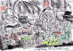 朝市へ。 さて、朝飯を食って元気が出た。涼しいうちに行きたいとこが一杯ある。というか 暑くなってしもたらどこも行かれへんかもしれん。因みにお粥屋さんの向かい側の 路地から朝市が始まっていいる。 さあ、行こう。 好きやなあ、こんなの。 極彩色が沸き立っている。 野菜の色、果物の色がとても鮮やかなのが目に眩しい。 どれもこれも活き活きして安くて美味そうだ。 ニンニクや唐辛子滅茶苦茶美味そう。ここには生 … 続きを読む ルアンパバーン、ビエンチャン、バンコクの旅−14、朝市へ。
