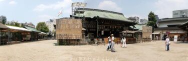 昼飯食った。 ほろ酔いでええ気分。 天満天神繁昌亭のチケットは先ほど買った。まだ時間がある。 天満宮に行ってみよう。 すぐそこだ。 かなり小さい。大阪代表やからもうちょっと立派でもええんとちゃうやろか。 中に入ったら広場が一つ。 立派なお社があるけど。何となくがらんとしてる。寂しいですなあ。 参詣者も多くはない。暑い日やからしょうがないですなあ。 天満宮といえば天神さん。 いなかの小さな町にはどこ … 続きを読む 爺さんたちの万博と大阪の街。18ー大阪天満宮へ。