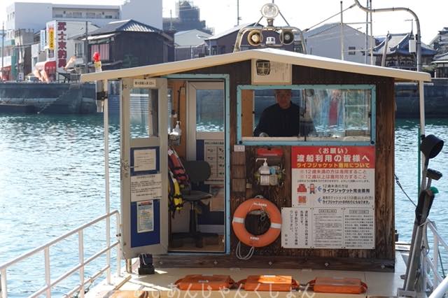 たまたま、こっち側の船着場に船と乗組員の方がいてはった。