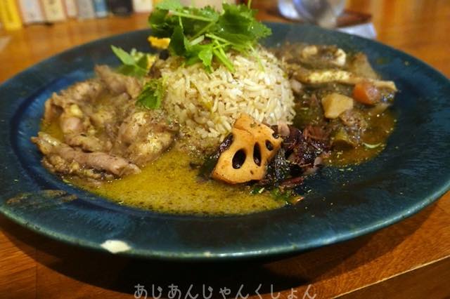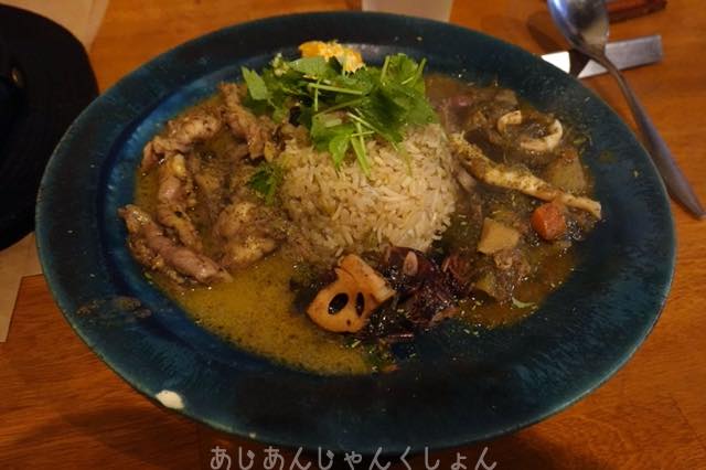 礼文島天然昆布x鯛アラ出汁x丹波鶏セセリのカレー&ヤリイカ、蕪、大中寺芋のベジ豆カレー