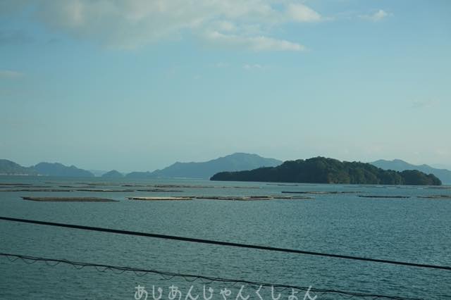 安浦あたりの名物、牡蠣の養殖いかだがあるのはあたりまえ。