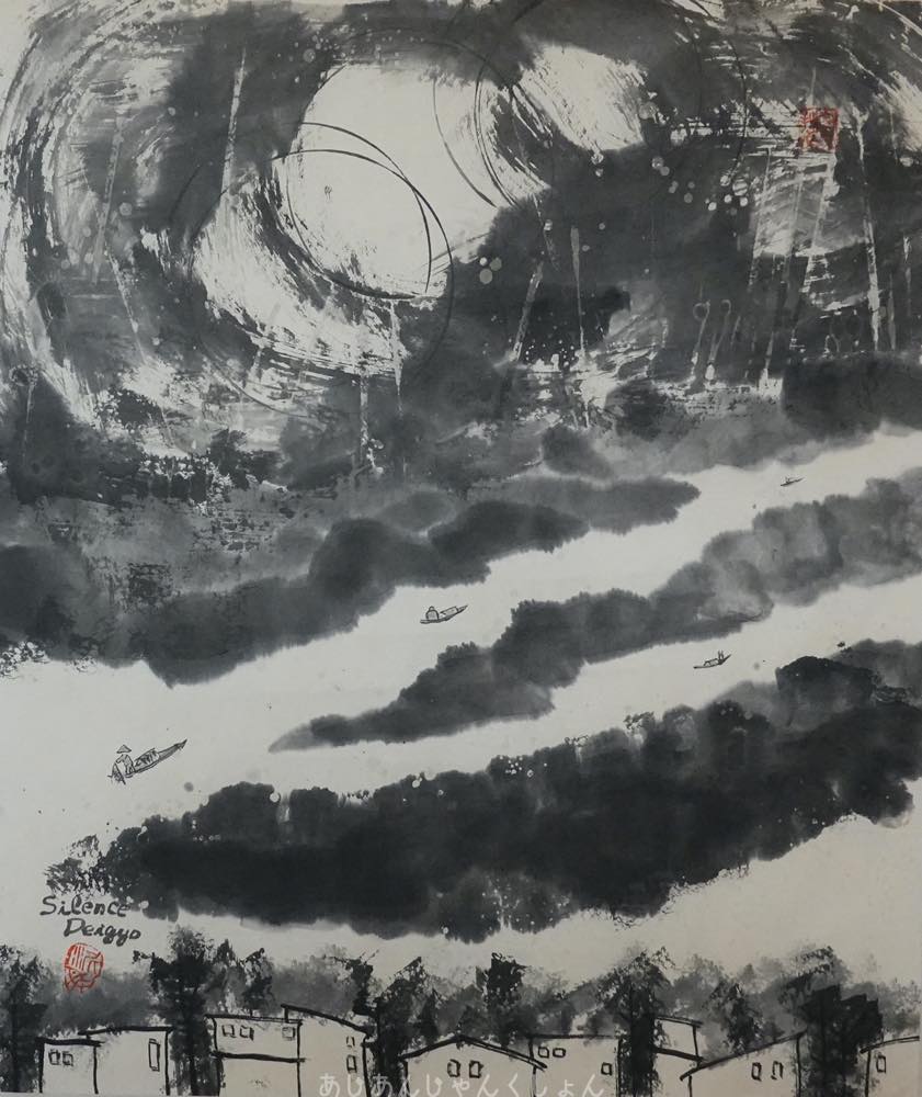 李白の詩、友人会宿のココロを絵にした。つもり。