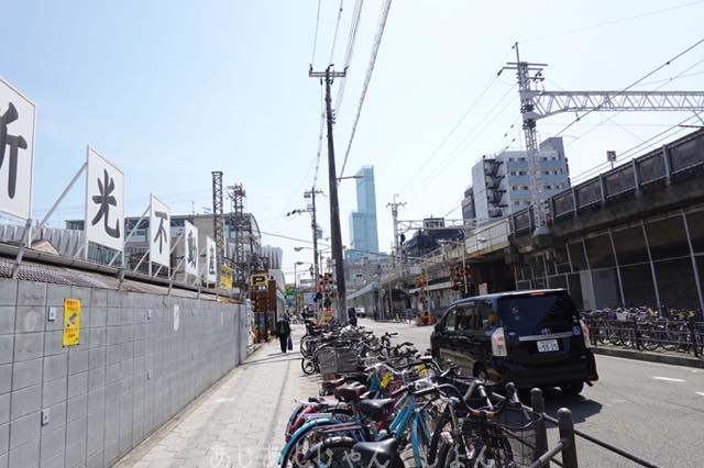 南海電車とJR環状線の駅があって、直角に交差してる。