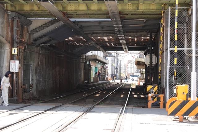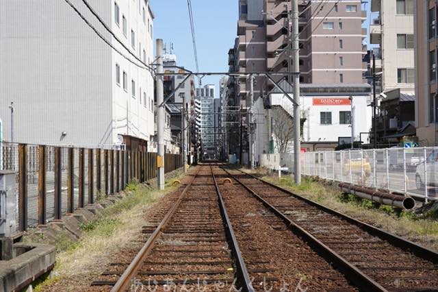 このあたりは路面電車ではなくて、専用軌道になってる。