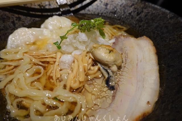 ワンタン的なやつがうまそうだったんで、牡蠣清湯+肉寿司のセットをいただく。1560円。