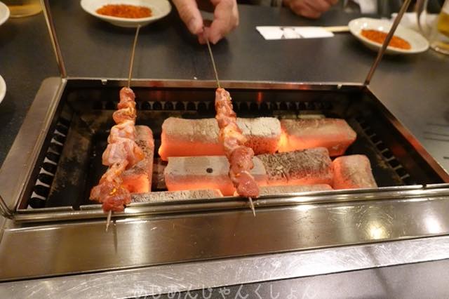 串焼き機がやってきて、自分で焼くのだ。