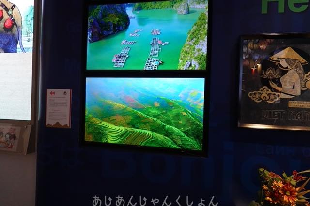ありきたりの写真パネルともっともらしい、特産品がならんでるだけ。