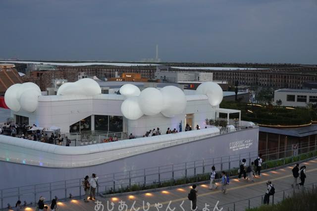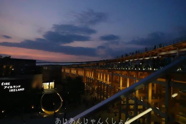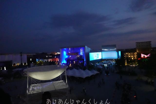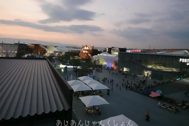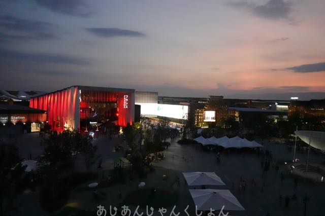 照明がつきはじめたパビリオンたちもそれぞれが色とりどりで美しい。