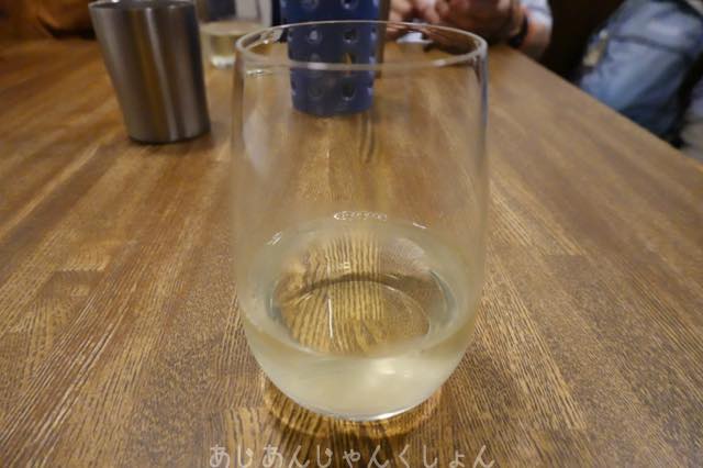 友人たちはビール、わしはワインで。赤は冷えてないんで冷たい白をいただく。
