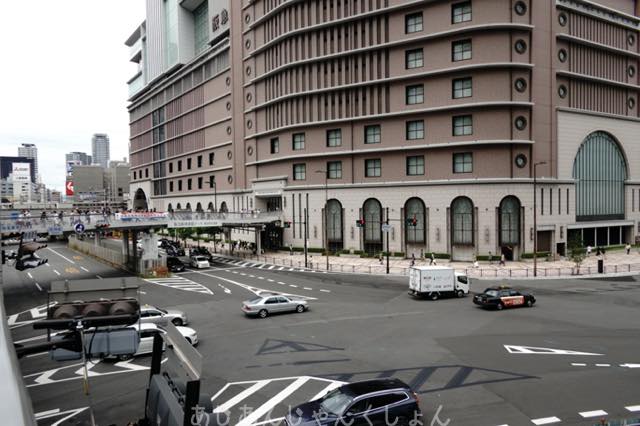 阪急デパート、阪神デパート、大阪駅で囲まれたあたり。