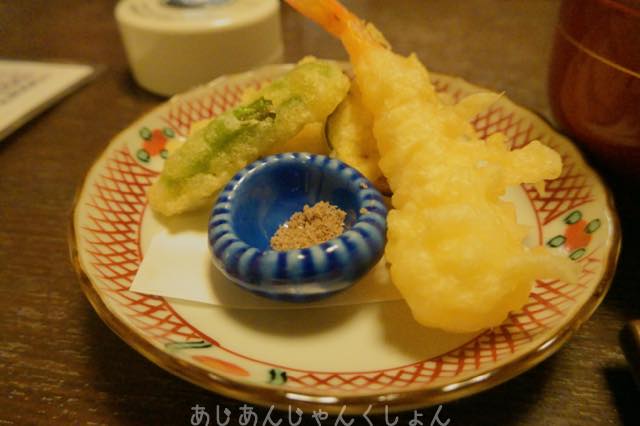 天ぷらは後で揚げたてが供される。