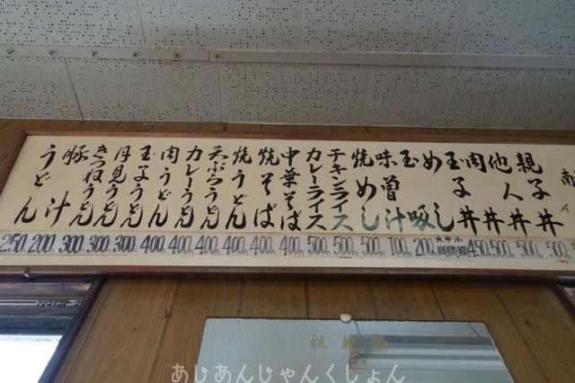 壁にメニュー表が貼ってある。