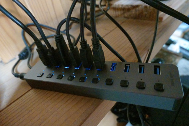 新たに購入した10口のUSBハブを確認。