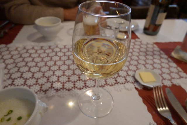 Aセット+前菜プラス白ワインでいただく。