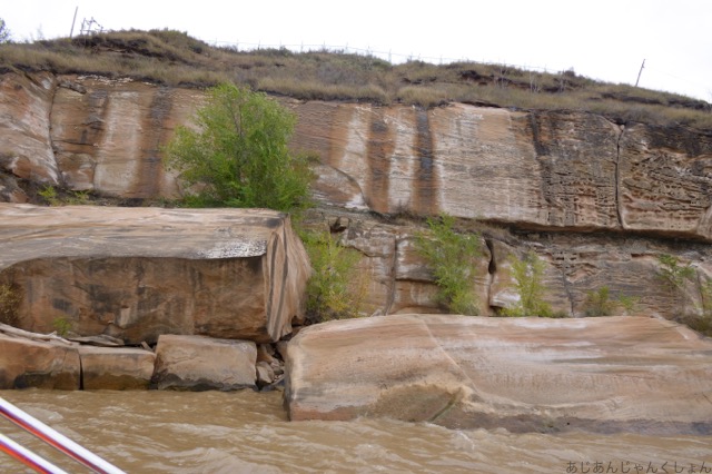 船に乗って、黄河を遊覧しながら、河岸が画廊のように見えるのを観覧するということらしい。