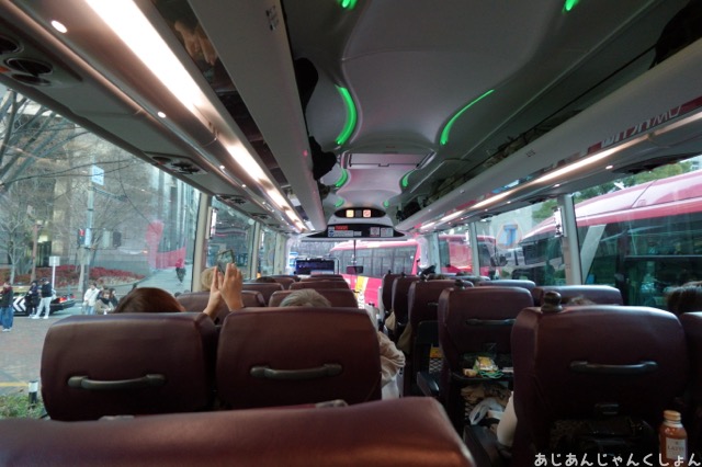 めんどくさいなあ。デラックスバスやのに、普通に座ったらええのに・・・