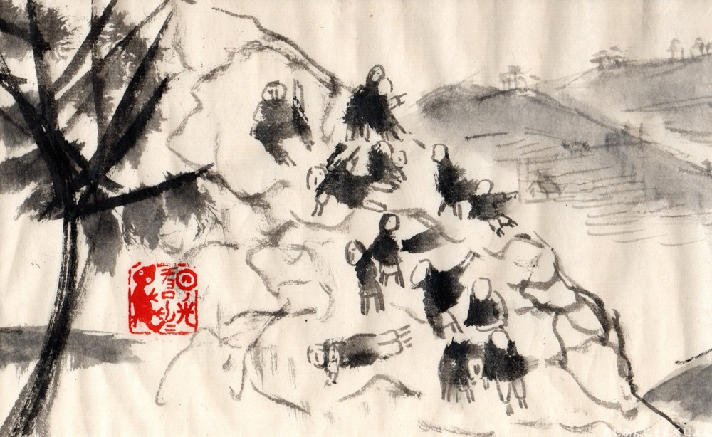 ずっと向こうの方が賑やかだ。子どもがたくさんやってきた。