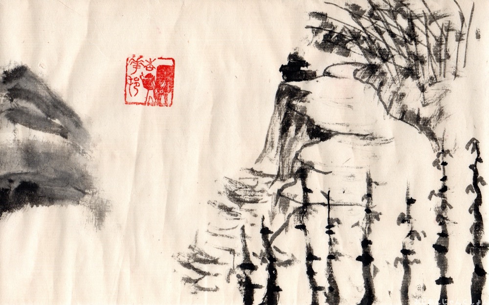 崖の横からヒョロヒョロっと上に伸びてる木。